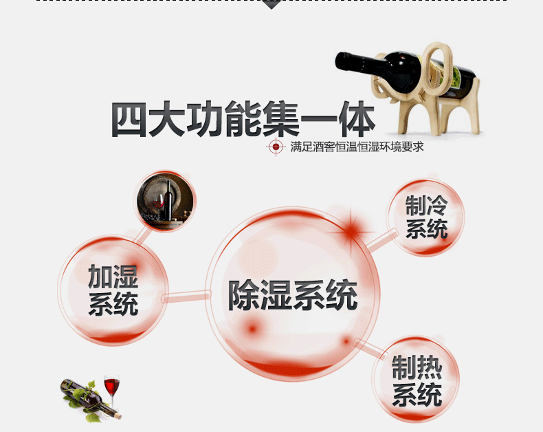 3、靜音設(shè)計(jì):音樂(lè)會(huì)影響葡萄酒中有機(jī)物在瓶中緩慢的生長(zhǎng)變化進(jìn)程,本機(jī)器低音設(shè)計(jì),讓紅酒擁有自己的音樂(lè)。